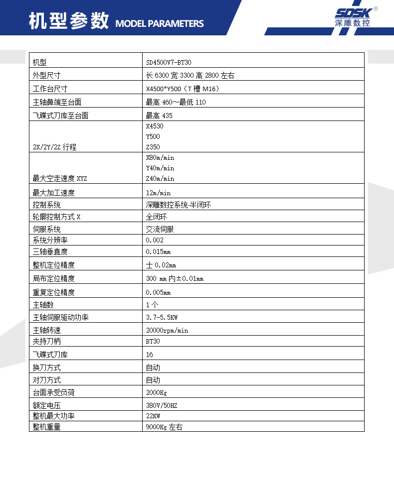 大型3米-6.5米天軌式加工中心SD-4500V7-BT40數(shù)控機床