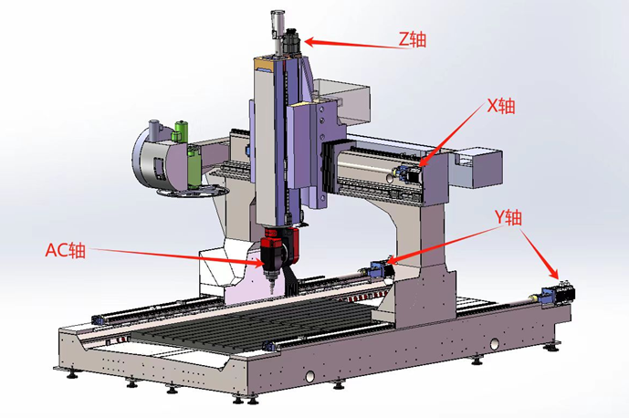 The motion mode is forward and backward movement of the Y-axis gantry, left and right movement of the X-axis machine head, up and down movement of the Z-axis spindle, and the A-axis can± 110· Rotation, C-axis can± 360· Rotate.
